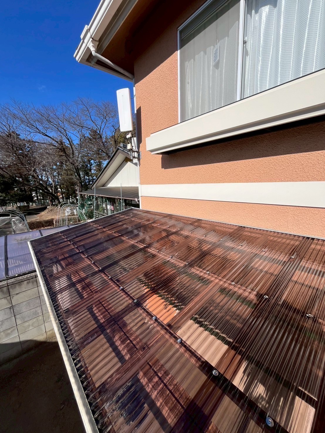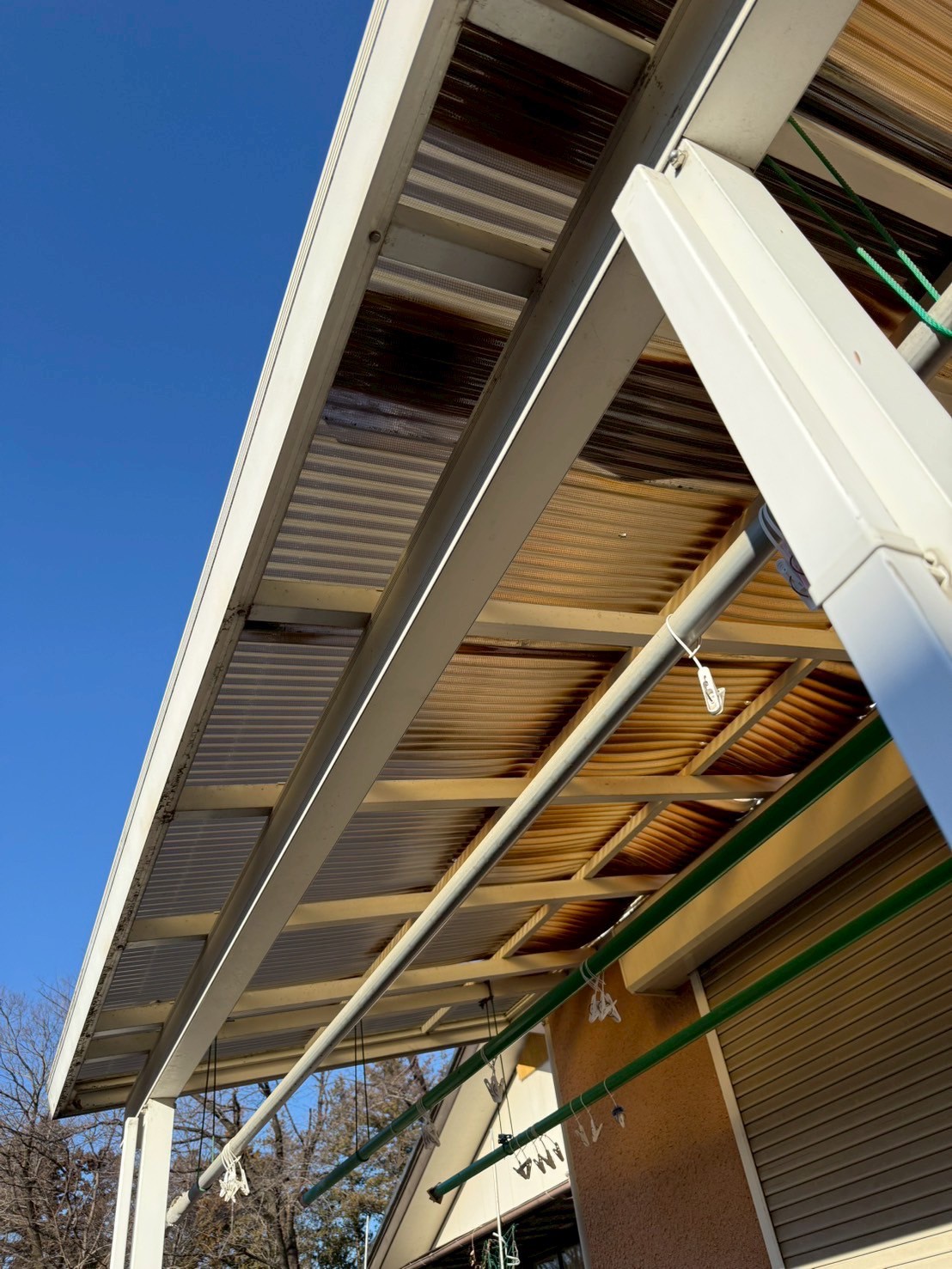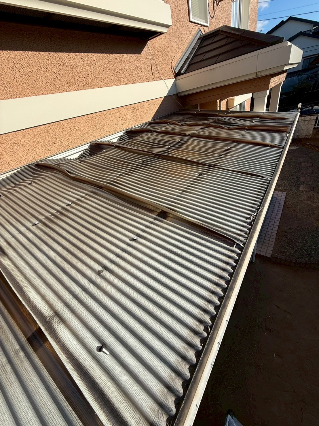 Works Detail太田市 A様 バルコニー屋根工事 カテゴリー屋根 エリア太田市 金額7.1万円 見積書ダウンロード 工事期間 1日 工事内容 現状のポリカ屋根が劣化して機能していなかったため、新しい屋根に変更しました。 工事のきっかけ ポロポロになっていて大風の際飛びそうだったためご依頼いただきました。 施工前 施工前 施工後