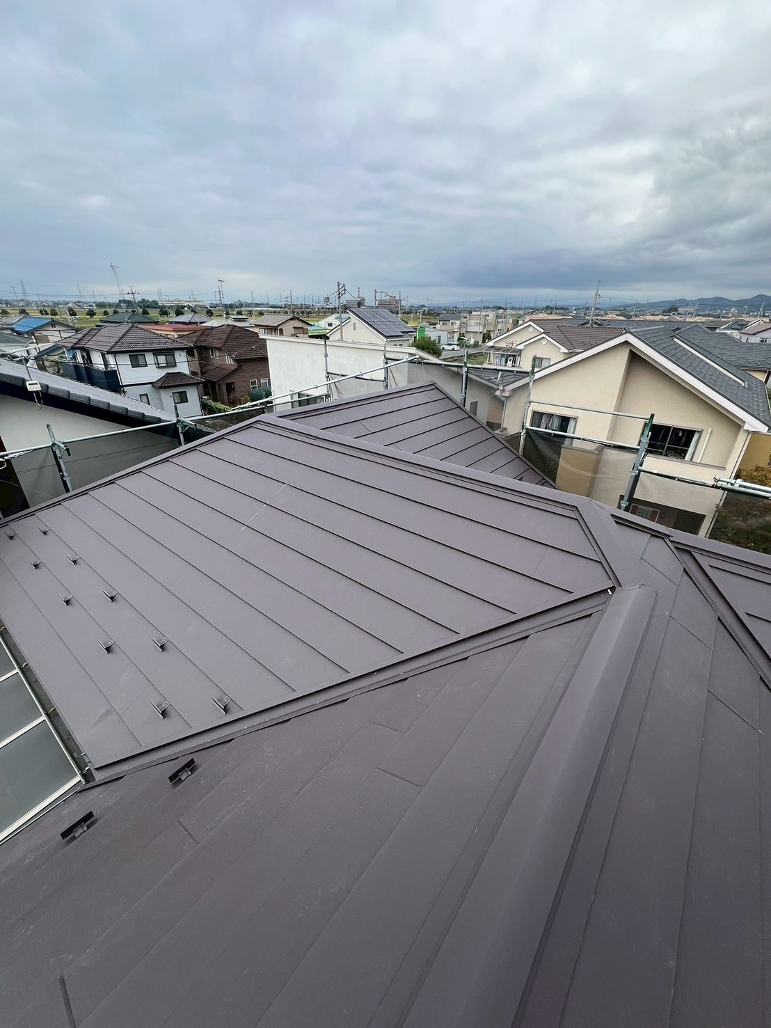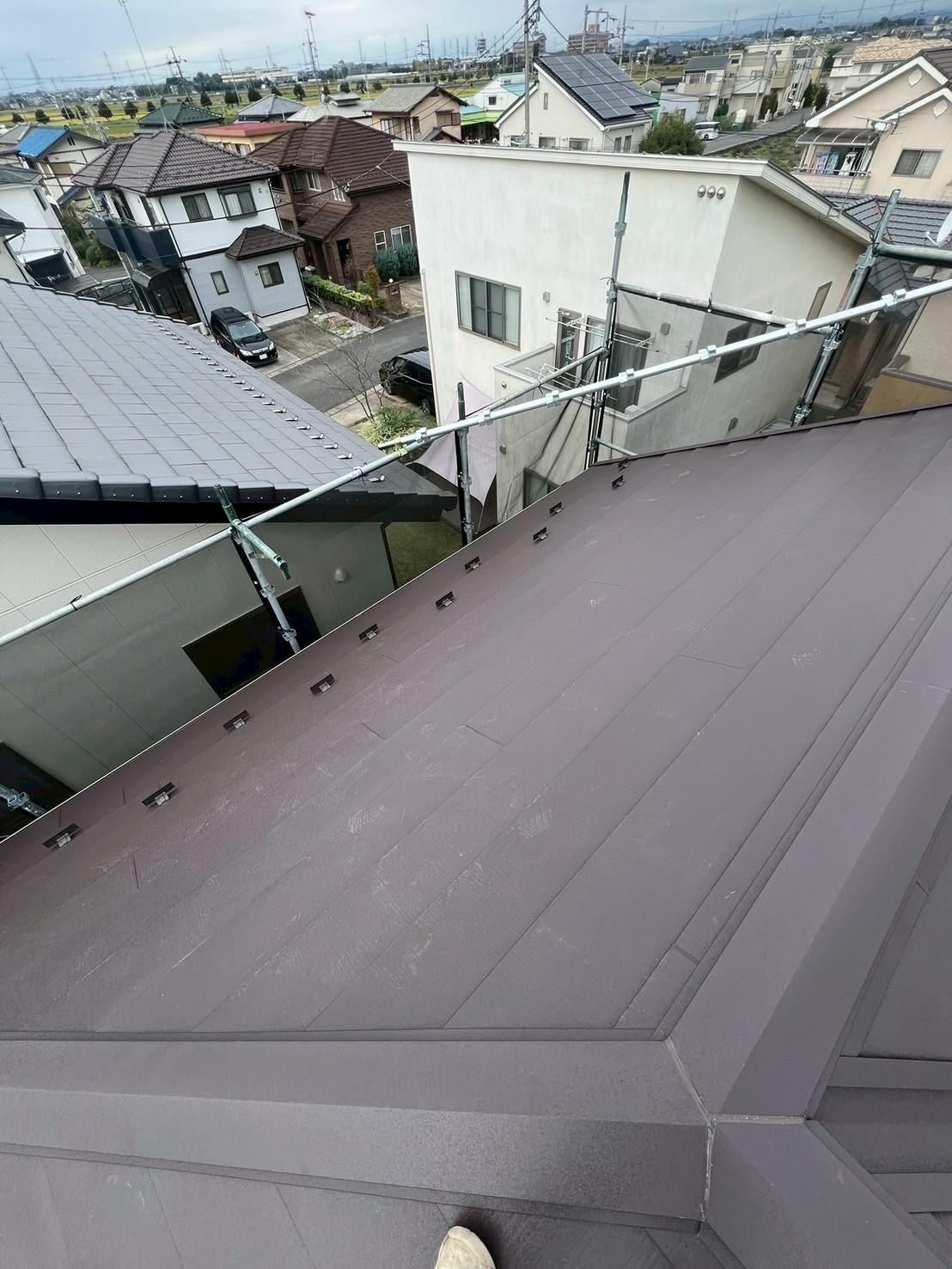 太田市のリフォーム補助金も併用し、今張ってあるスレート屋根の上から板金屋根をカバー工法として施工しました。
